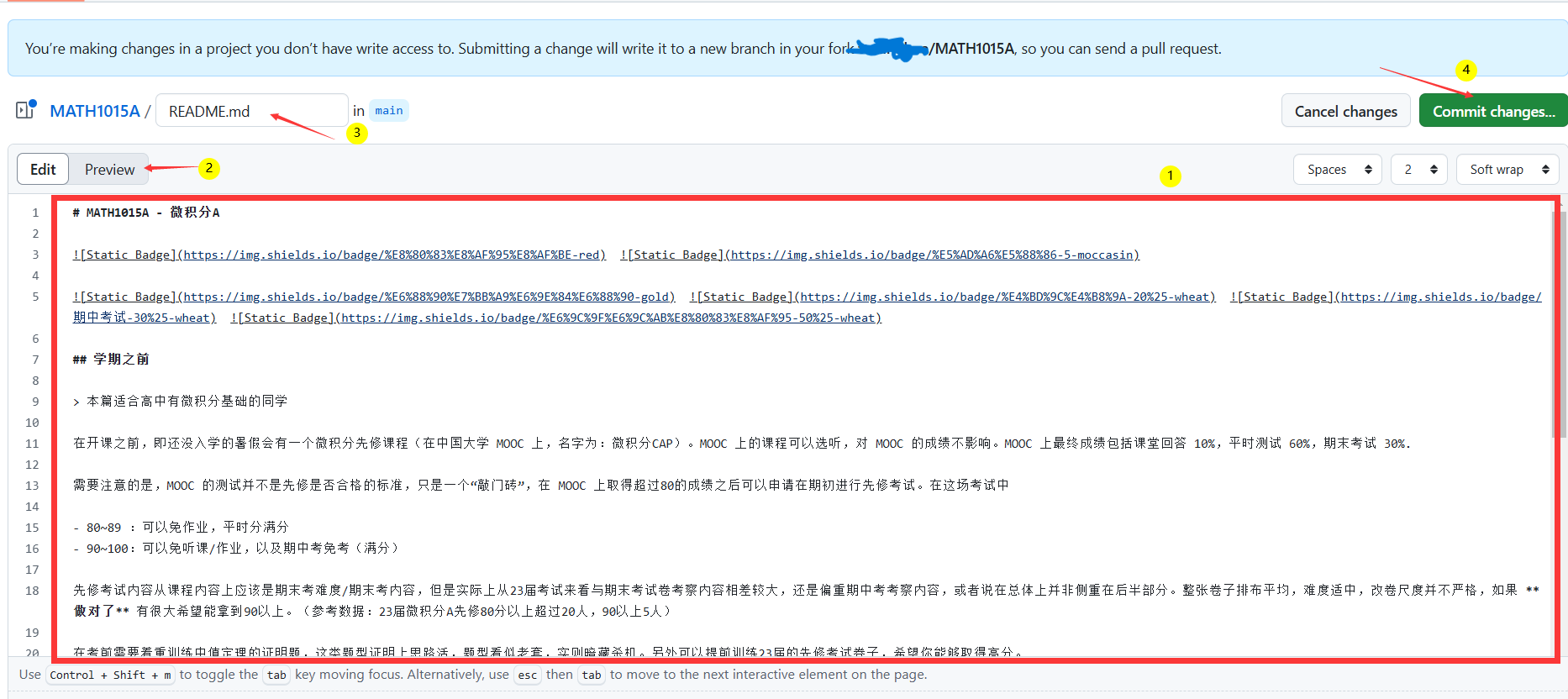就可以在 GitHub 的网页编辑器修改内容,如下图所示: